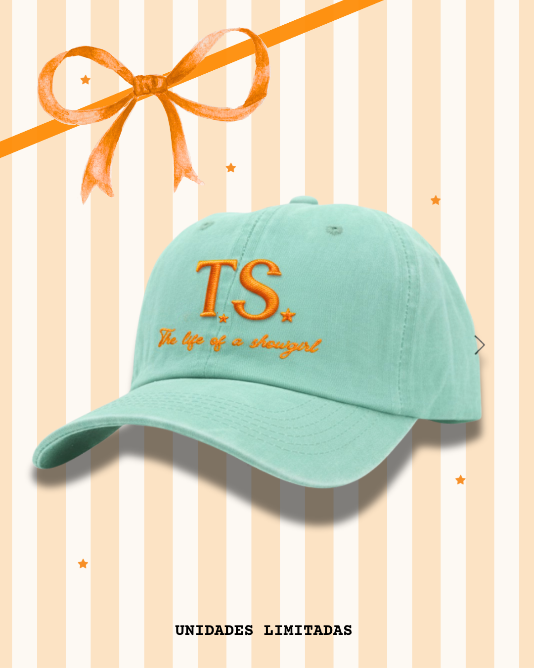 Fresca, atrevida y llena de encanto ❤️🔥. Este jockey en tono menta captura la esencia vibrante de The Life of a Showgirl: un accesorio que combina lo elegante con lo divertido, ideal para darle un pop de color a tu outfit.